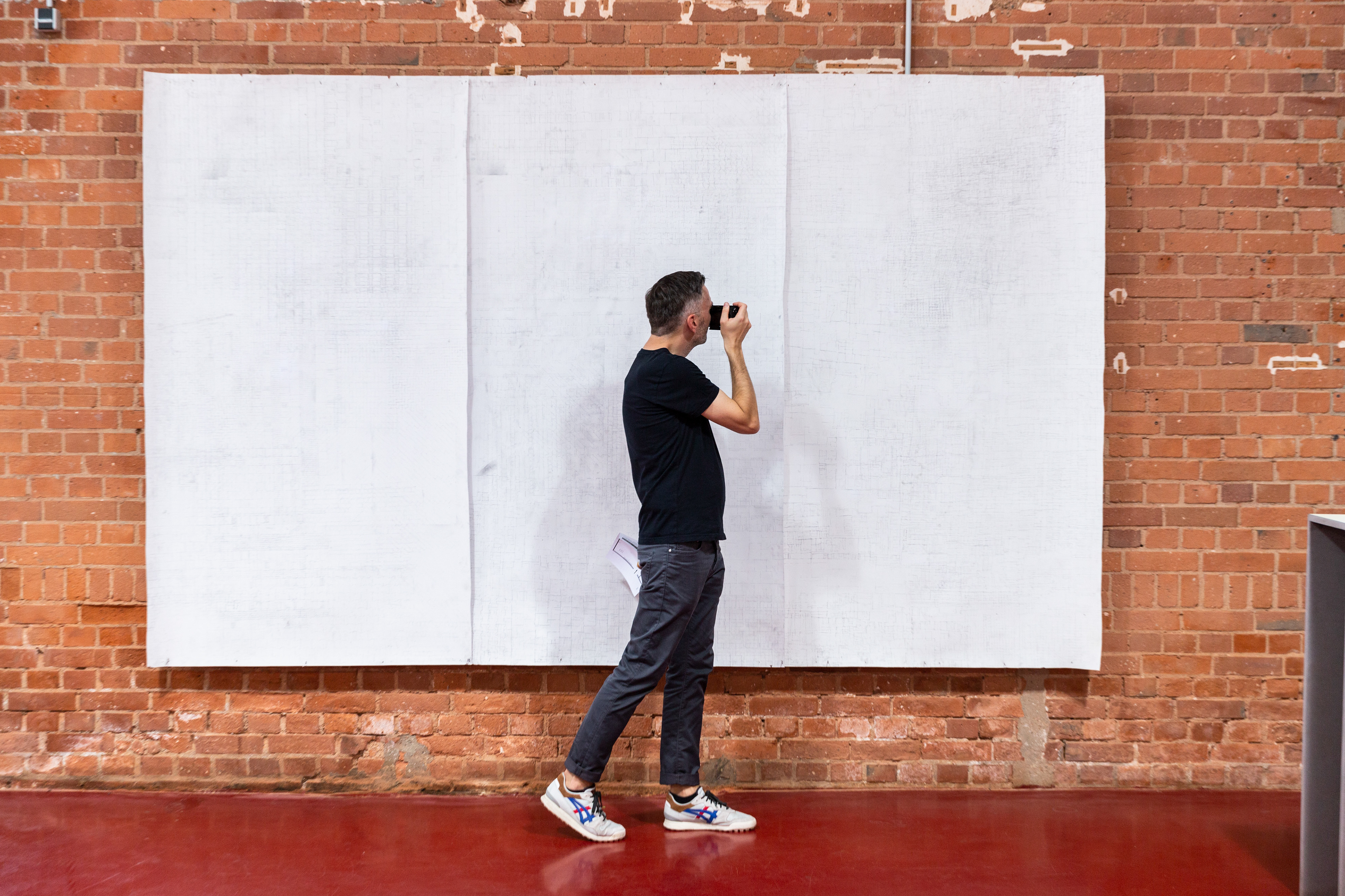 Verschiebungen_Grafit auf Papier_Ausstellungsansicht_boesner Projektraum Spinnerei Leipzig_220cm x 280cm_2019_Foto: Michel Klehm